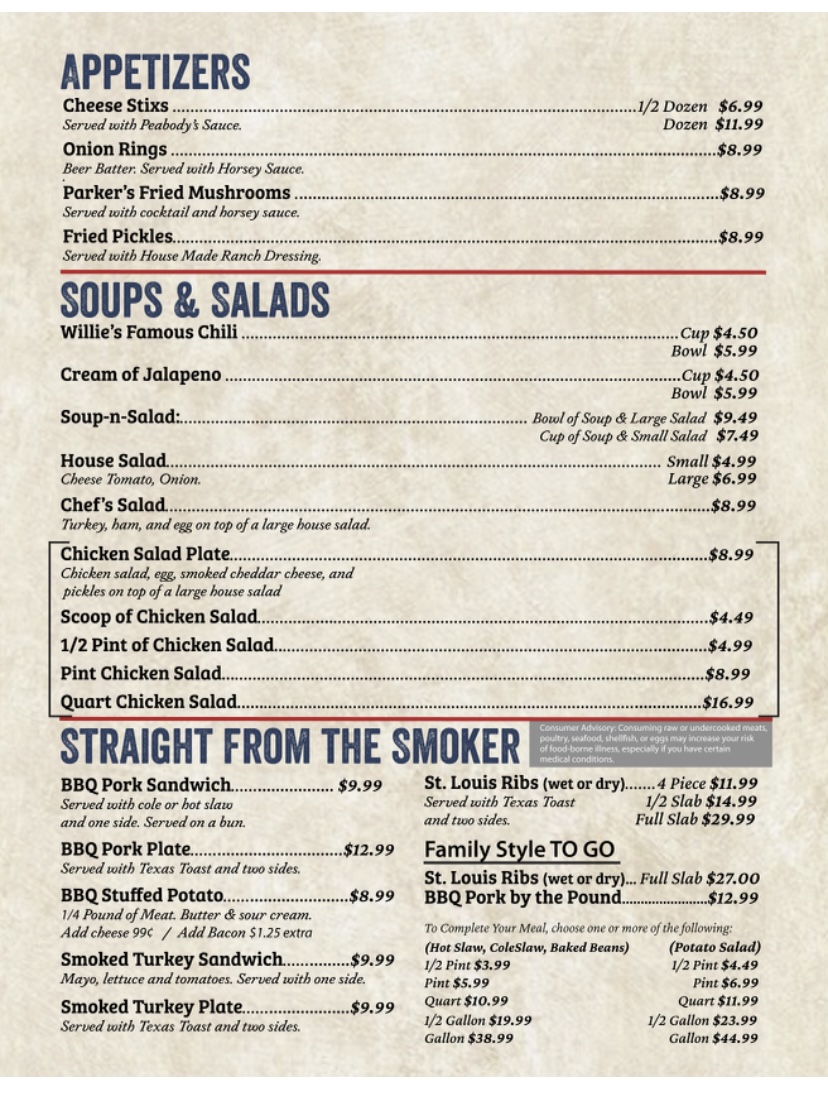 Located at 7701 N Lee Hwy in Cleveland, TN, Willie's Smokehouse stands out as a beacon for barbecue lovers seeking genuine flavor and comfort. This family-friendly establishment invites diners to indulge in an authentic BBQ experience, where the art of smoking meats is taken seriously. From St. Louis Ribs to BBQ Pork By The Pound, Willie's promises a hearty meal that’s bound to satisfy any craving.